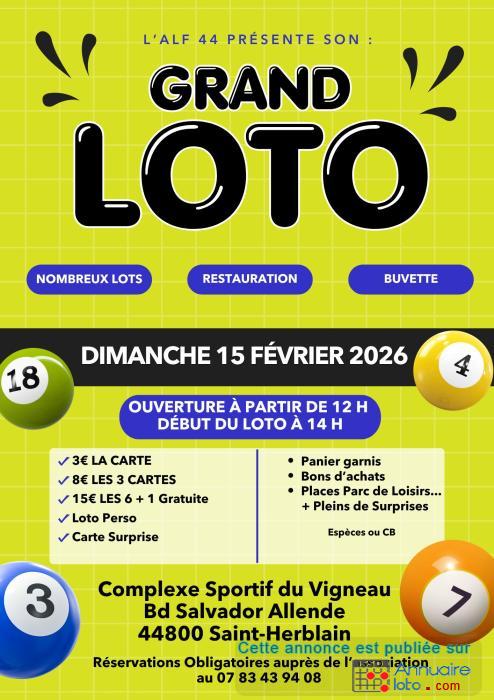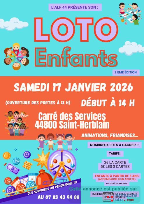 L'ALF 44 organise un Loto Enfants 2ème édition.