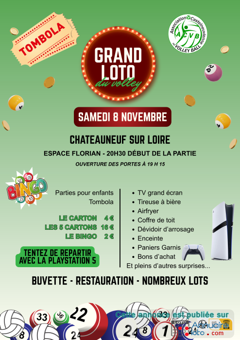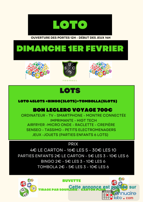 Au programme : 13 parties de Loto avec en plus tombola et Bingo