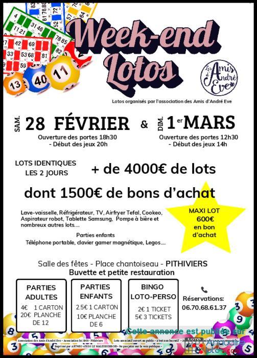 Grand week-end de lotos organisés par l'association des Amis d'André Eve.