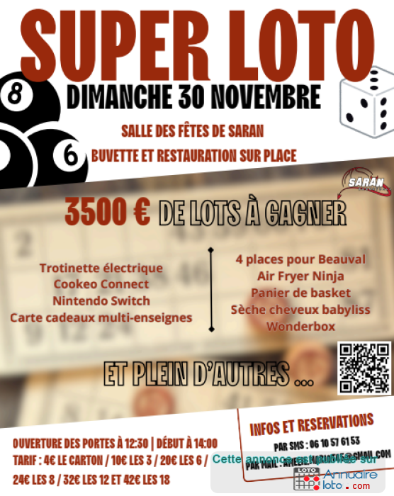 🎉 L’USM SARAN BASKET organise son SUPER LOTO ! 🎉
