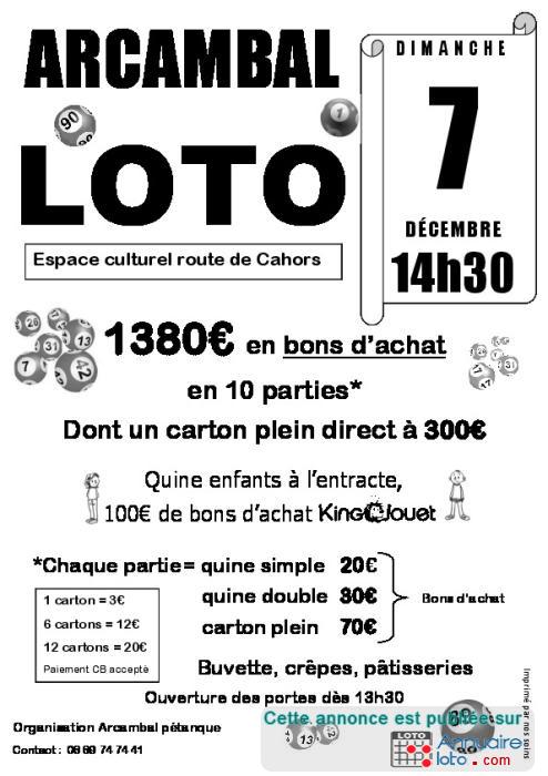 Quine simple = 20€, quine double = 30€ et carton plein = 70€