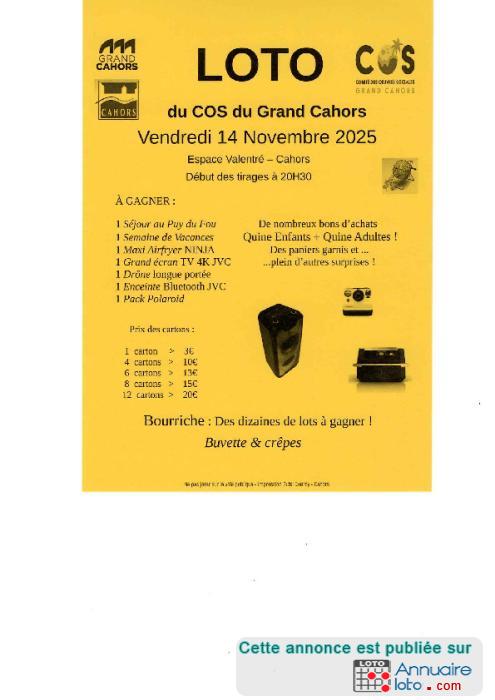 Nombreux lots : Bons d'achats, canards gras, jambon, filets garnis...