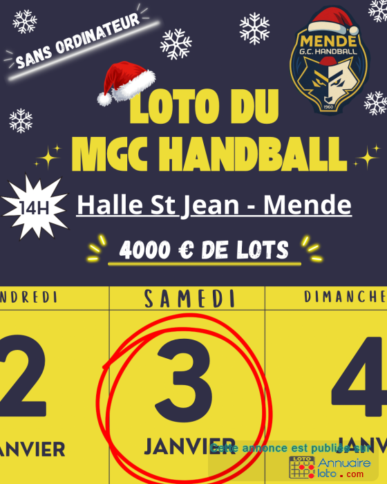 Le club de handball du MGC organise son traditionnel loto du nouvel an sans ordinateur.