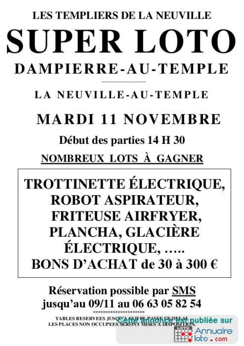SUPER LOTO du 11 Novembre 2025 de l'association des TEMPLIERS DE LA NEUVILLE