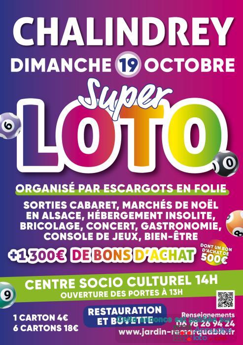 Super loto avec 15 parties- ouverture des portes à 13h et début des parties à 14h