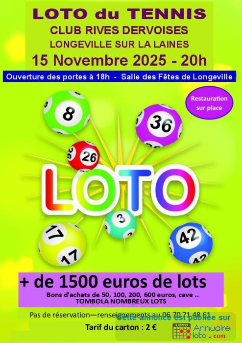 + de 1500 euros de lots. Bons d'achat de 50, 100, 200, 600 euros, cave.