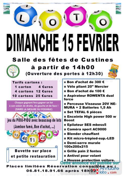 Les associations « Baptiste Sa Vie en SLO » et « Pompey s’Anime pour Vous » vous attendent le dimanche 15 Février 2026 et cette année ce sera à la salle des fêtes de Custines pour son Loto annuel !!!!
