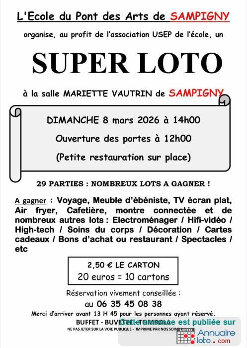 LOTO au profit des élèves de l'école de SAMPIGNY