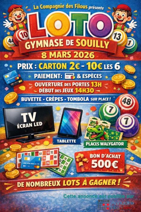 Loto dont les bénéfices permettront de financer les projets de l'école Ligier Richier de Souilly .