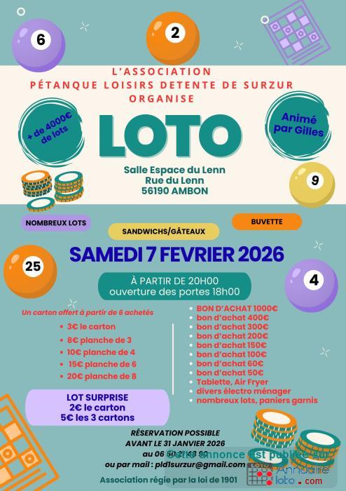 Super loto organisé par Pétanque Loisirs Détente de Surzur
