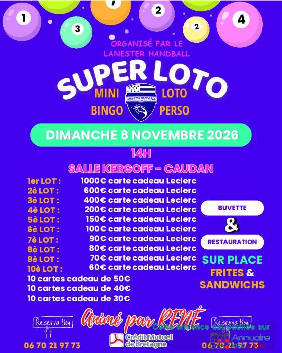 2ème Loto à 20h (Ouverture des portes à 17h30)
