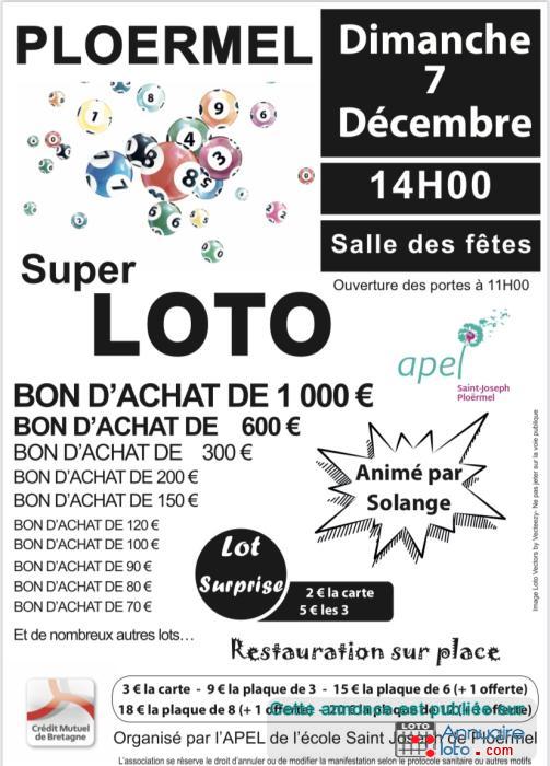 Super LOTO organisé par l’APEL Saint Joseph de Ploermel et animé par Solange