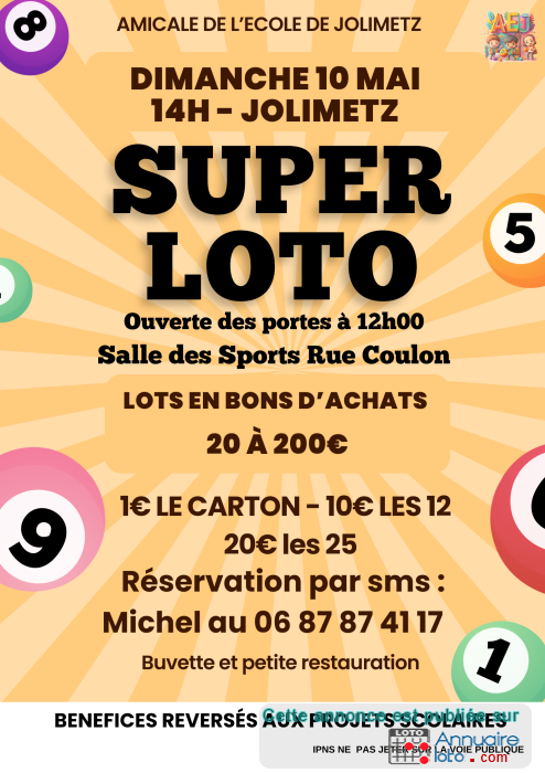 Super Loto organisé par l’Amicale de l’Ecole de Jolimetz