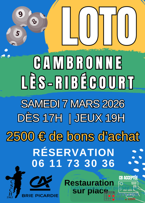 Le Cambronne Sporting Club Handball organise son traditionnel Loto du printemps.