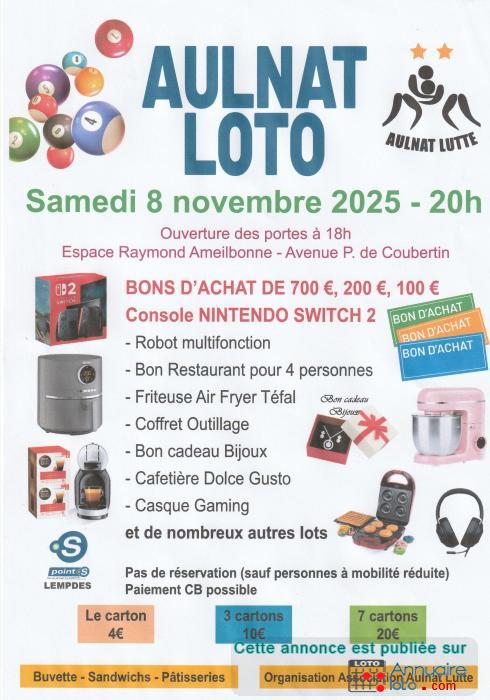 l'Association Aulnat Lutte organise son loto d'Automne