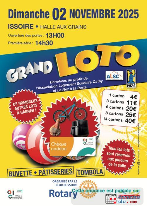 Le Rotary Club d'Issoire organise son traditionnel LOTO, au profit de 2 associations: Le Nez à Ta Porte et ALSC.
