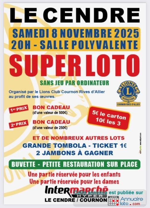 SUPER LOTO du Lions de Cournon Rives d'allier au profit de nos oeuvres