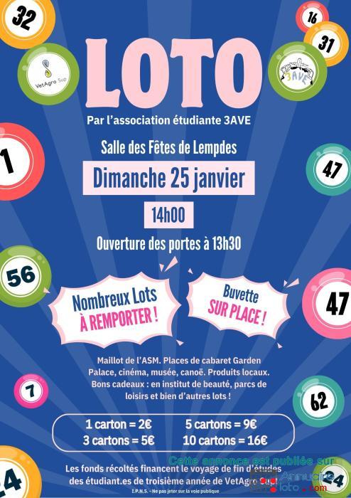 L’association étudiante 3e Année Voyage d’Etude de VetAgro Sup organise son loto !