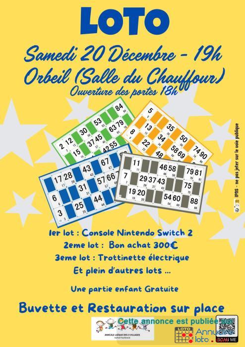 LOTO organiser par l'amicale des 3 Villages