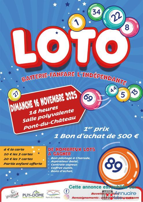 Rendez-vous dimanche 16 novembre 2025 à 14 h (ouverture des portes à 13 h 30) à la salle polyvalente de Pont-du-Château pour un après-midi plein de suspense, de rires et de beaux lots à gagner !