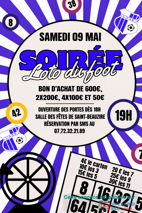 Ouverture des portes 13h30 pour l'achat des cartons - début du loto 14h30