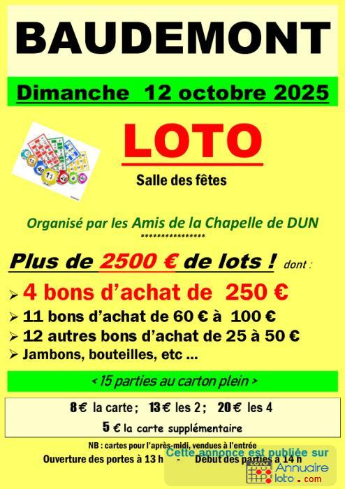Loto organisé par l'association "Les Amis de la Chapelle de Dun" avec plus de 2500 € de lots
