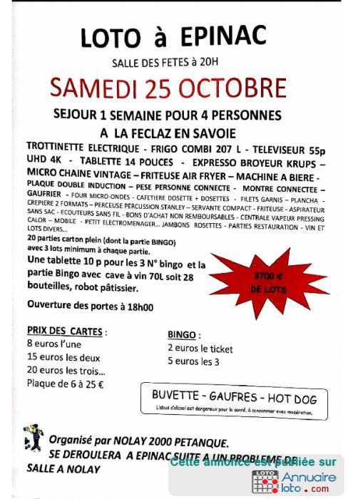 super loto de NOLAY 2000 pétanque ave 3700€ le dotation.