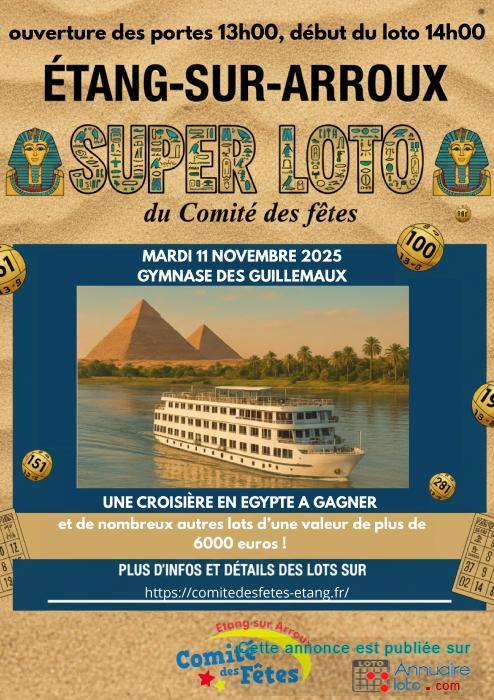 Organisé par le Comité des fêtes d'Etang-sur-Arroux, le traditionnel loto du 11 novembre se déroulera en 12 parties de 4 lots carton plein plus une partie BINGO.
