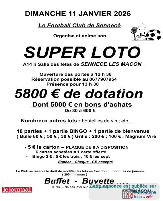 SUPER LOTO ORGANISE PAR LE FC SENNECE LES MÂCON
