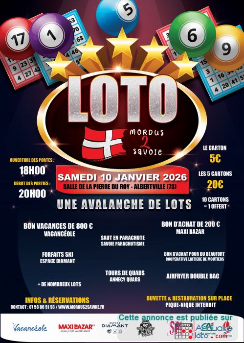 🎉 Le grand loto de Mordus 2 Savoie arrive à Albertville !