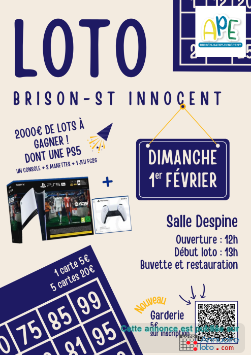 Loto organisé au profit de l'école de Brison-Saint Innocent.