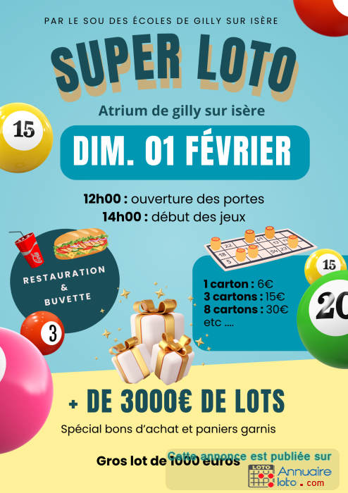 Super loto de Gilly sur Isère, par le sou des écoles !