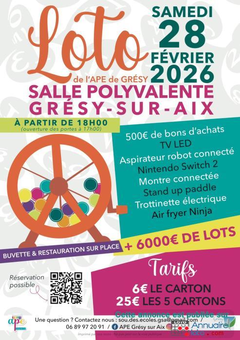 Loto de l'APE de Grésy sur Aix pour soutenir les écoles du village