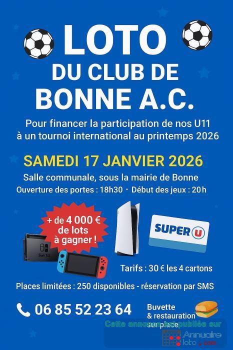 Loto 15 parties 250 places + de 4000 euros de lots