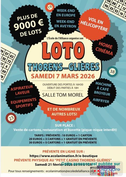 THORENS-GLIERES LOTO organisé par le comité des fêtes de Thorens Glières