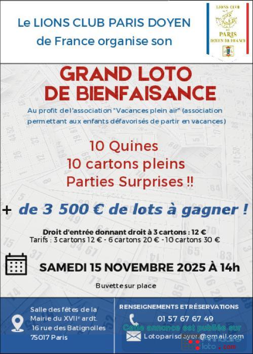 Droit d'entrée 12,00€ donnant droit à 3 cartons.