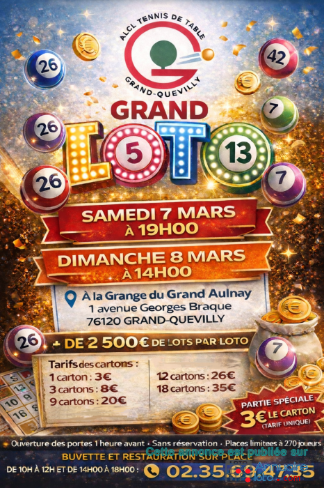 ALCL Tennis de Table – Grand-Quevilly vous donne rendez-vous pour 2 grands lotos à ne pas manquer :