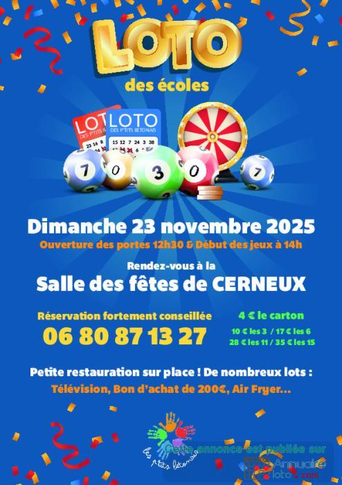 Loto au profit des écoles de BETON BAZOCHES et CERNEUX;