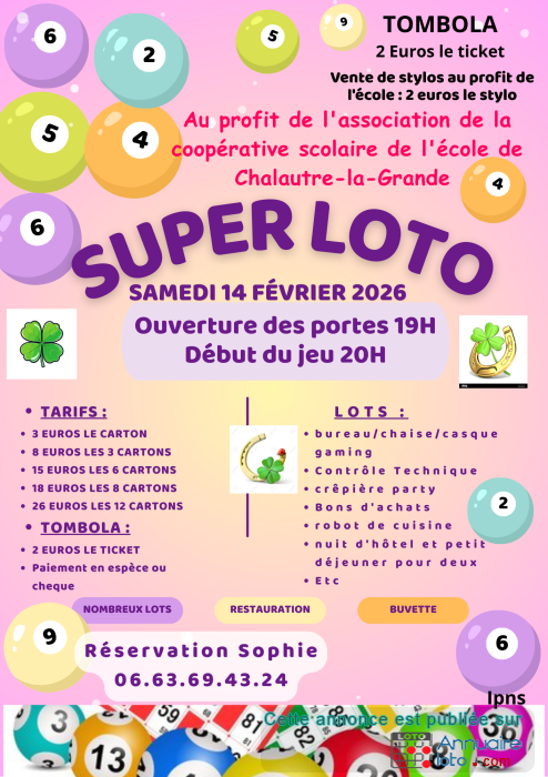 Super loto en 18 parties, plus 3 parties enfants, et tombola