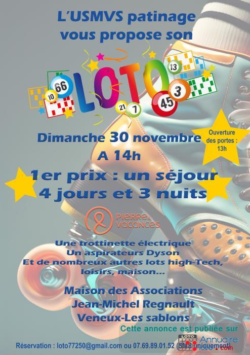 L’USMVS Patinage vous invite à son Super Loto de Noël, le dimanche 30 novembre 2025 à la Maison des Associations – Jean-Michel Regnault,