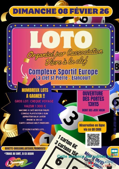 Comme chaque année, l’association de quartier « Vivre A La Clef » organise son loto au Complexe Sportif Europe à la Clef de St Pierre à Elancourt, le dimanche 8 février 2026.