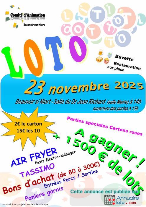 Le Comité d'Animation de Beauvoir-sur-Niort vous propose son LOTO annuel le 23/11/2025 !