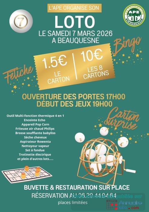 Loto de l'Association des Parents d'Elèves de l'école de Beauquesne.
