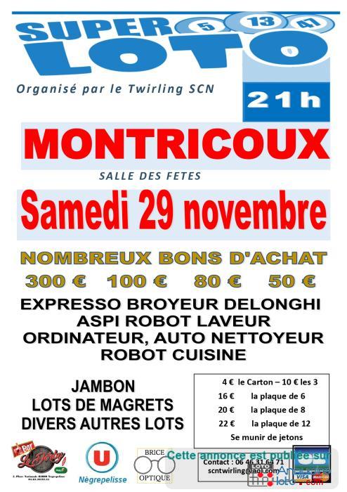 LOTO en 12 parties + 2 super cartons pleins + Tombola 10 lots