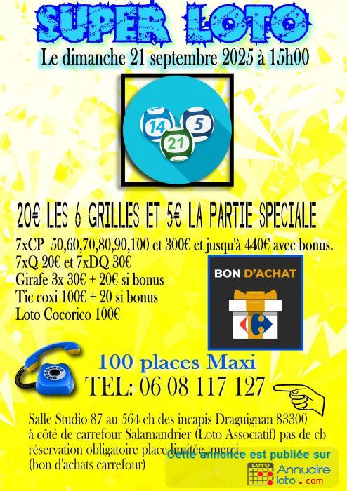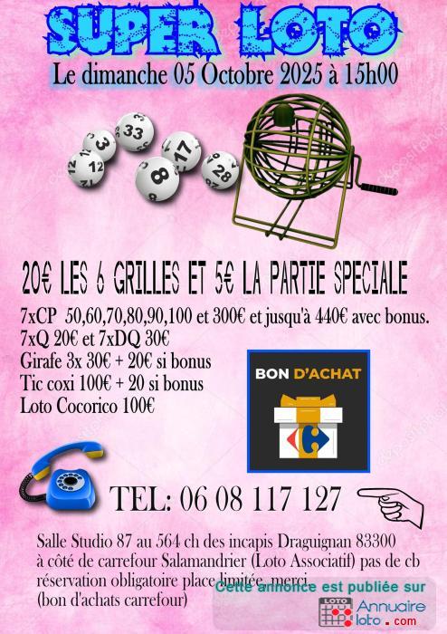 Super Loto bingo Draguignan incapis avec bon d'achats carrefour