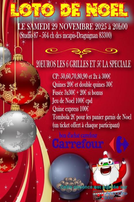Super Loto de Noel Draguignan au Studio 87 avec bon d'achats carrefour à gagner !