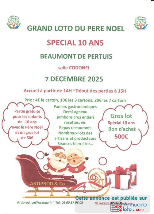 Traditionnel GRAND LOTO DU PERE NOEL qui fête les 10 ans de l'association Artiprod&co.