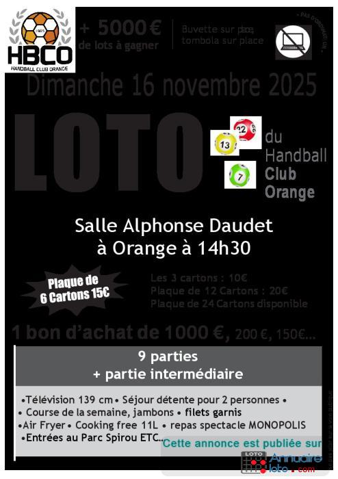 Venez tenter votre chance dans une ambiance conviviale lors de notre Loto composé de 9 parties + 1 partie intermédiaires.