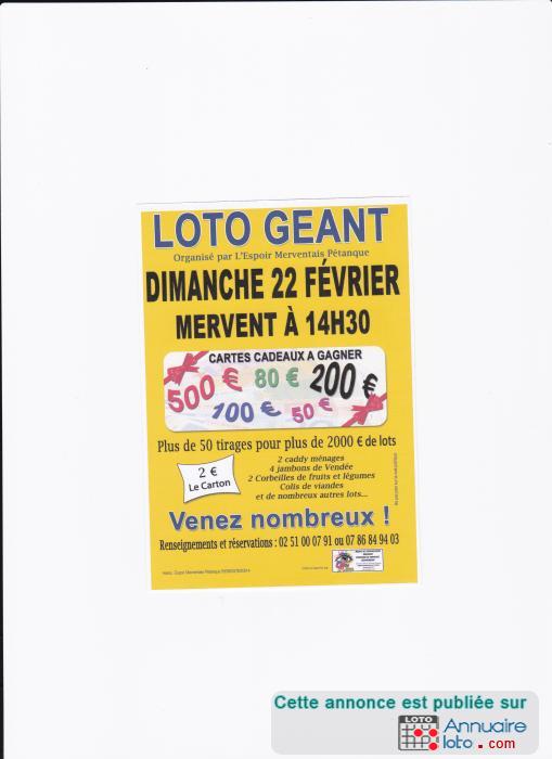 loto géant plus de 2000€ de lots pour plus de 50 tirages caddy ménages jambons de Vendée colis de viandes