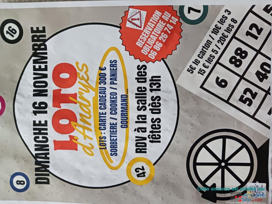 Localisation du loto : salle des fete andryes grande rue 89480 Andryes
